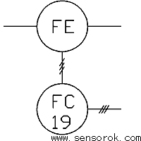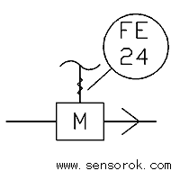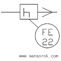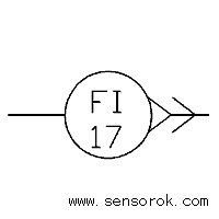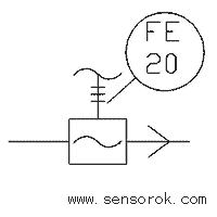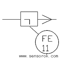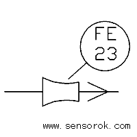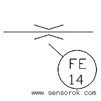 | 流量检测元件的通用符号 | 差压式指示流量计法兰或角接取压孔板 | 法兰或角接取压测试接头,不带孔板 |