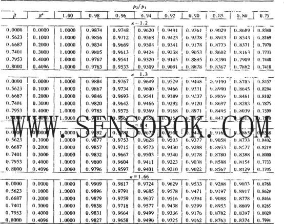 表2.5.18喷嘴和文丘里喷嘴的可膨胀性系数 值