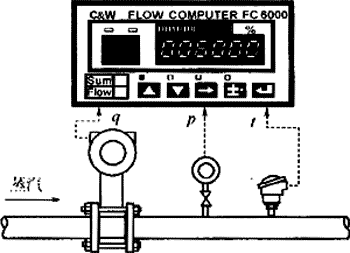 图4.2 蒸汽净热量计量系统 图4.3热量差计量方法系统 式中 hs棗饱和蒸汽比焓,kj/kg; hw棗冷凝水比焓,kj/kg。 这一方法仅适用于饱和蒸汽是因为目前商品化的定型的流量(热量)显示表通常只有三个模拟输入通道,如果用于过热蒸汽,就必须增加一个输入通道用于过热蒸汽温度信号的输入。实现的方法可用计算机,也可向仪表制造厂特殊定购。 |